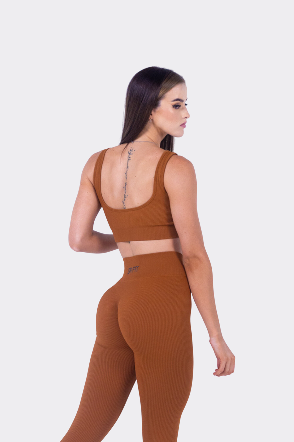 Rose is 5'10" and wears a size MEDIUM in the Vintage Tan Bra
